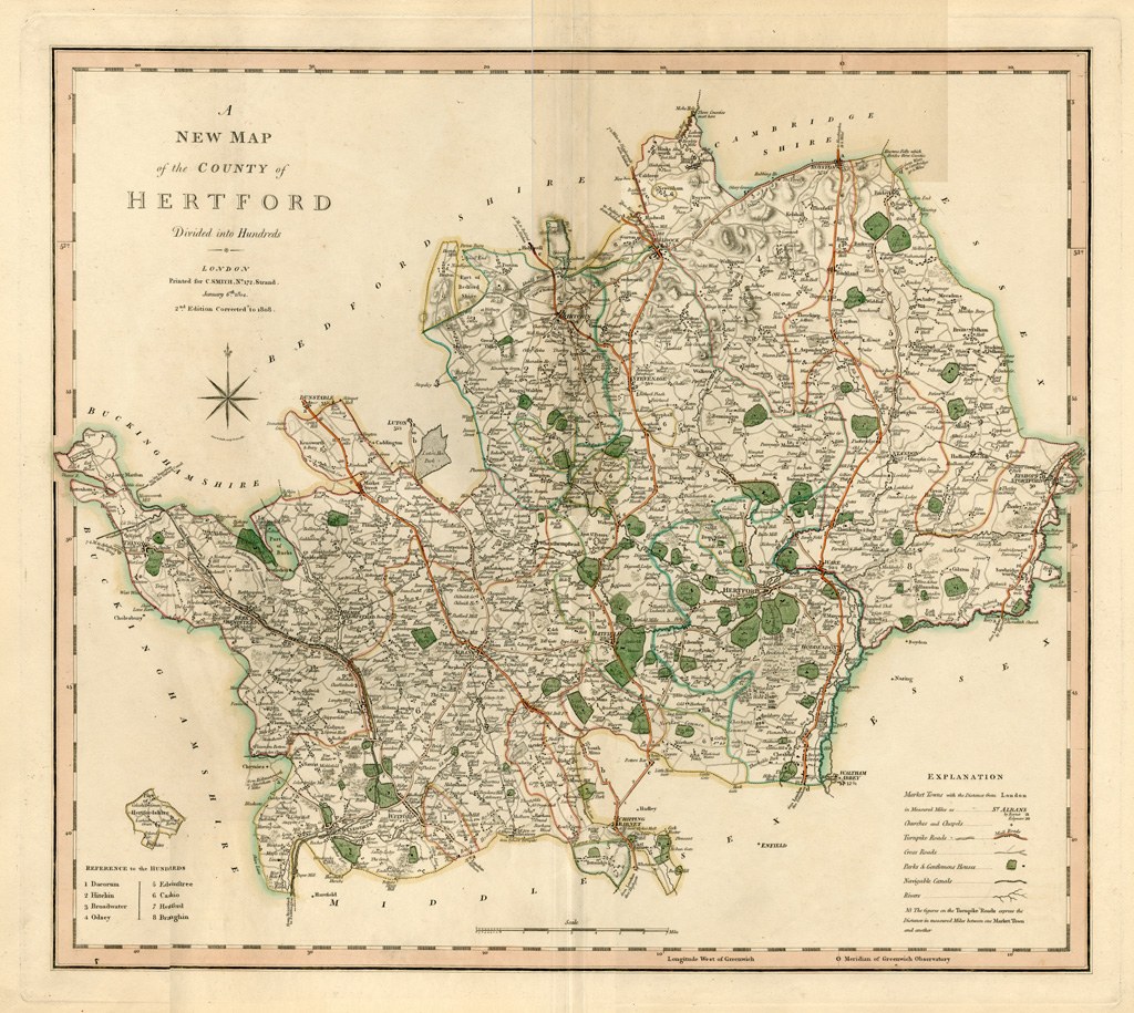Click here for a full resolution image of his Jan 1808 map of Hertfordshire