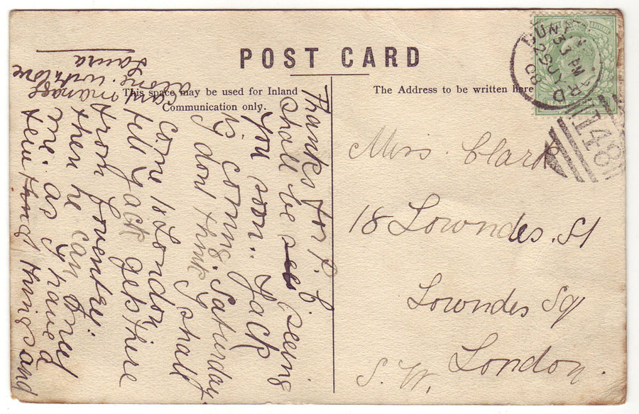 This card is an un-used example of one published by A.G.Day of Buntingford - series number 171890. For some reason there is part of a Hertfordshire postmark on the blank side of the card.